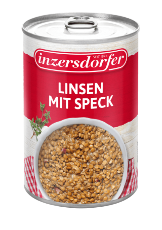 Wasser, weiße Bohnen 36 %, geräucherter Speck 15 % [Schweinefleisch, Nitritpökelsalz (Speisesalz, Konservierungsstoff: Natriumnitrit), Glukosesirup, Gewürze, Gewürzextrakte, Stabilisator: Diphosphate, Speisewürze (hydrolysiertes Mais- und Rapseiweiß), Antioxidationsmittel: Natriumascorbat, Rauch], Tomatenmark zweifach konzentriert, WEIZENMEHL, modifizierte Stärke, Speisesalz jodiert (Speisesalz, Kaliumjodid), Schweinefett, Gewürze (enthält SELLERIE), Knoblauch, Zucker, Rindfleischextrakt, Karamellzuckersirup, Zwiebelpulver, Gewürzextrakte.